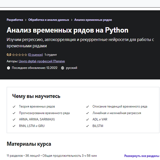 ДОСТУПНО [Центр digital-профессий ITtensive] Анализ временных рядов на Python